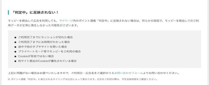 ポイントが反映されないときは、まずモッピー公式サイトで、何が原因なのか把握することが大切です。