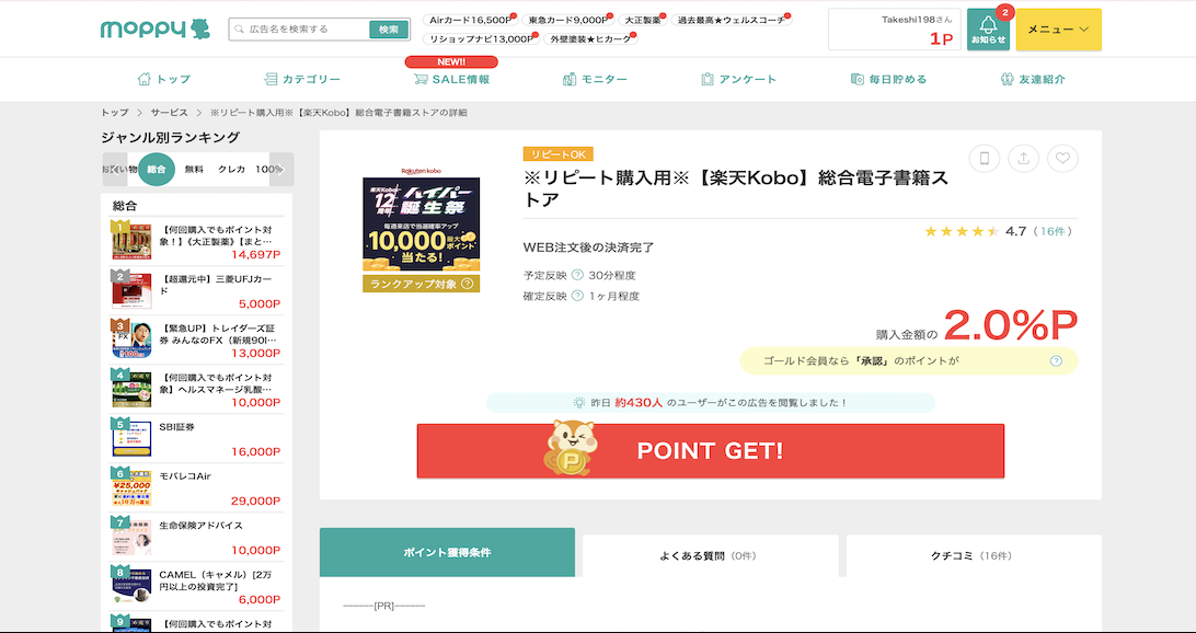 モッピーを利用して1年以上の僕でも最初は焦りました。